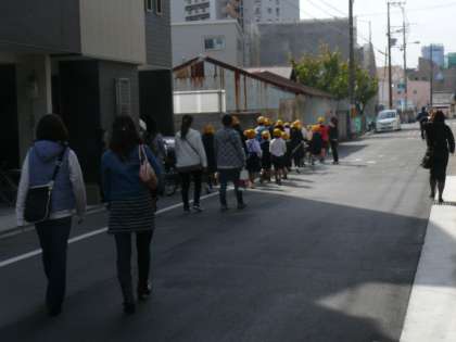 清掃前の意義確認の集会にもたくさんの保護者の残ってもらい、一緒に現場まで付き添っていただきました。