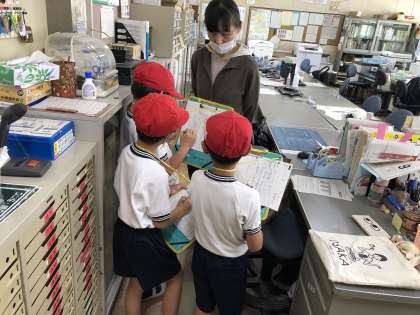 国語科の学習で、学校の先生や職員の方にどんなお仕事をしているかを聞きました。
