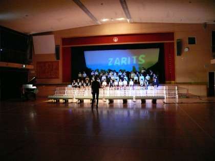 今日から、腰を据えたステージ練習に取り掛かりました。2年生の(ザリッツ)の練習風景です。いろいろな音や照明を入れながら、子どもたちの演技や歌声が一番輝ける舞台を模索しながら進めているところです。