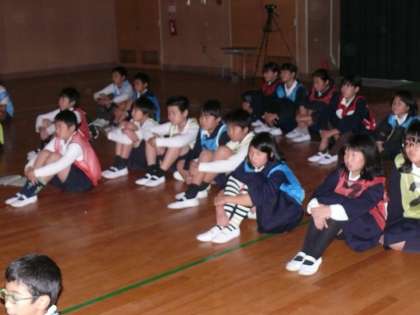 5年生の練習です。5年生は、5年生になってのこの6か月間の成長を特に「林間学習」での出来事を中心に演じます。林間学習でつかんだ「友だち」への思いを、ストレートに劇にしています。