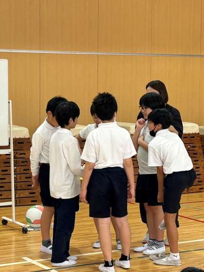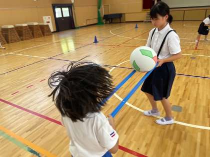 「チームで協力して体を動かそう」をめあてに、フラフープを使った「けんけんぱ」や、おたまにピンポン玉を乗せて走る「ピンポンダッシュ」などの種目を通して、チームで競争をしました。子どもたちはルールを守りながら、協力して取り組むことができました。