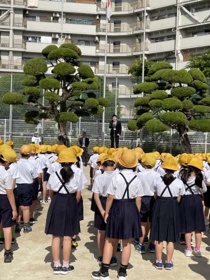 まず、教育実習生の紹介がありました。小学校の先生になるために2週間、大東小学校で勉強されます。児童のみなさんは元気よくあいさつをしていました。