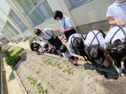 インゲンマメはしっかりと実がつき、ヘチマは子葉が出てきました。これから暑い時期になります。どんどん生長していくので、とても楽しみです。