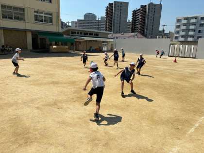 6年生は体育でスポーツ鬼ごっこをしています。
