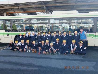 今日は、2年生が社会見学で大阪市営バスの「守口車庫」へ行きました。