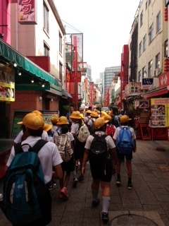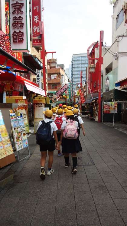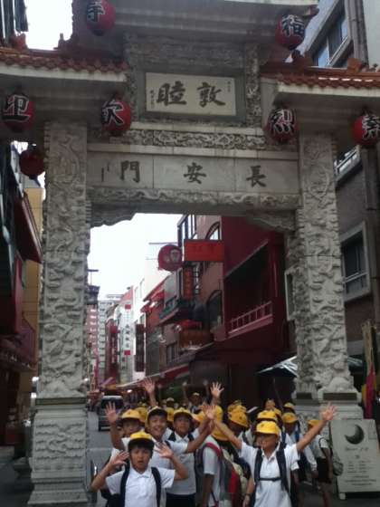 5年生は、神戸方面に出かけています。神戸元町から歩いて、南京町を見学し、メリケンパークに到着しました。