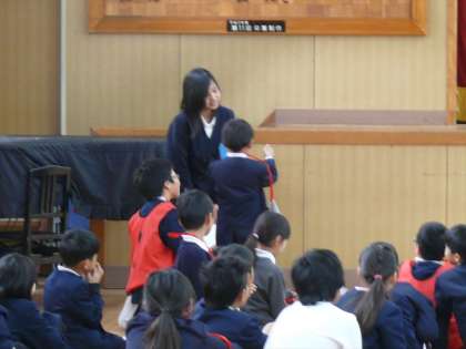 楽しい時間もあっという間に終わり、講堂に戻ってきて、「終わりの会」です。
