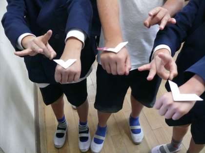 理科室に寄ってみると、「紙ブーメラン」を作っていました。「なかなか自分のところに戻ってこないなあ」「ちょっと形を工夫しよう」など言いながらも、楽しそうに作って、遊んでいました。