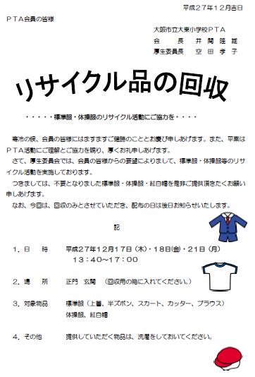PTA厚生委員会では、標準服・体操服のリサイクル活動に取り組んでいます。