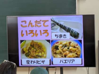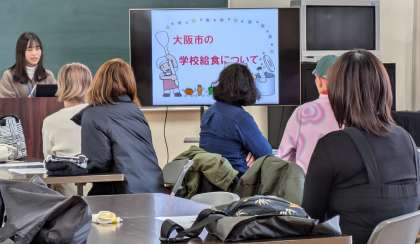栄養教諭から、大阪市の学校給食について、クイズを交えながら学びます。
