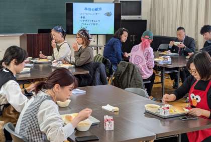 毎年恒例のPTA給食試食会に、14名の参加者がありました。