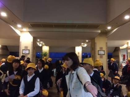 ホテル「サンぺルラ志摩」の玄関とロビーです。このあと、部屋割り、避難訓練をして、夕食、入浴、買い物タイムとなります。夕食は、バイキングです。