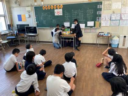 1回目のなかよしタイムでは、「ソーシャルスキルすごろく」をしました。「立ってお辞儀をしましょう」「ハイタッチをしましょう」などがマスに書かれており、止まったマスに書かれていることをします。はじめは緊張している様子の子どもたちでしたが、ゴールした時には笑顔いっぱいで楽しそうな姿がみられました。