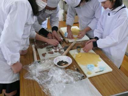 6年生が家庭科の調理実習でクッキーをつくりました。「会食をしよう」の実習です。