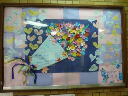 卒業する6年生が、今までの感謝の気持ちをメッセージに、そして花束に表しました。学校に来られた際には、ぜひご覧ください。