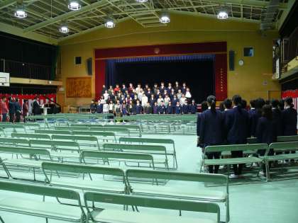 でも、教職員からして、ゆったりじっくりした気持ちで進行を見守れるのが、実は、この予行練習なのです。練習としての呼びかけであったり合唱であったり在校生の声であったり拍手であったりと気持ちを楽に味わえるのがこの日なのです。で、今日の練習は、教職員は少しだけ、感傷に浸りながらの練習をしたのでした。