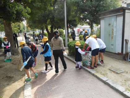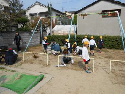 保護者や地域の方々と一緒に公園をきれいにしました。