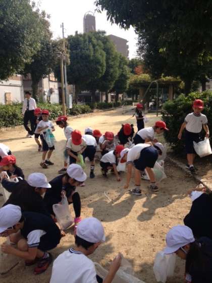 ドングリはとてもたくさん拾うことができたみたいで、大喜びでした。この後の学習予定は、拾ってきたものを使って秋らしいものを表現していきます。