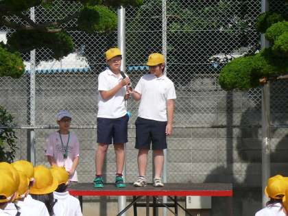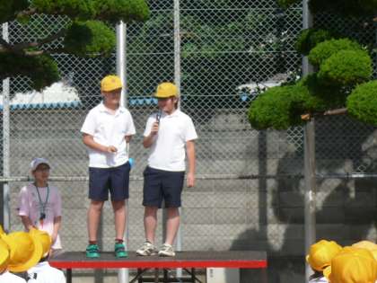 特にその意識を高めてもらおうという目的で、「健康の日」の児童朝会では、健康委員さんが全校児童に呼びかけをしています。