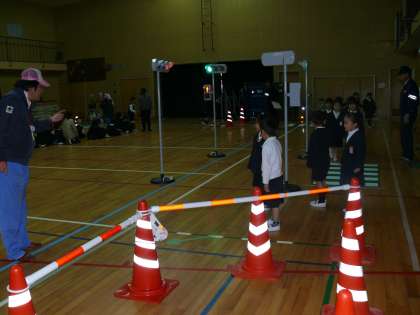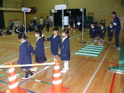 1年生は、安全な歩行の仕方を中心にお話と実際に歩いての指導をしていただきました。歩道に工事や駐車している車があるとの設定で安全な歩き方を教えていただきました。