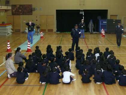 学校でも日頃から安全指導には、力を入れて指導していますが、さすがに警察の方が制服を着用して説明や指導をしてくださるので、子どもたちもいい緊張感をもって学習できました。
