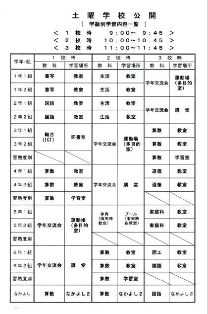 9:00〜11:45、3校時を観ていただけます。