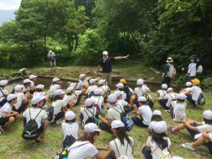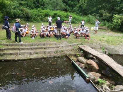 谷常さんから、魚つかみのこつを教えてもらっているところの写真です。