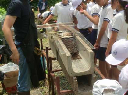焦げ目の付くほど焼き上げられたアマゴでしたが、焦げ目やわたの苦みもここでは、味わいの一つになったようです。「おいしい、おいしい」と言って食べていました。
