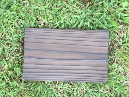真っ黒に焼いた焼き板を、たわしやタオルを使ったゴシゴシとこすって、みがいていきました。だんだんとつやが出てきて、なめらかになってきました。