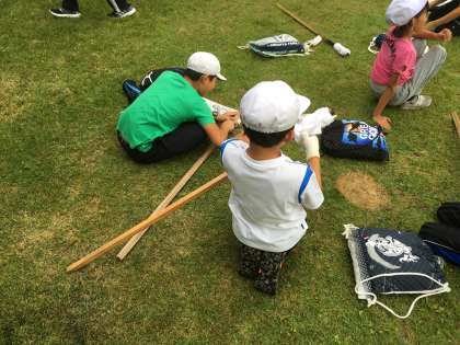 それでもできあがると、たいまつになる楽しみができたみたいで喜んでいました。