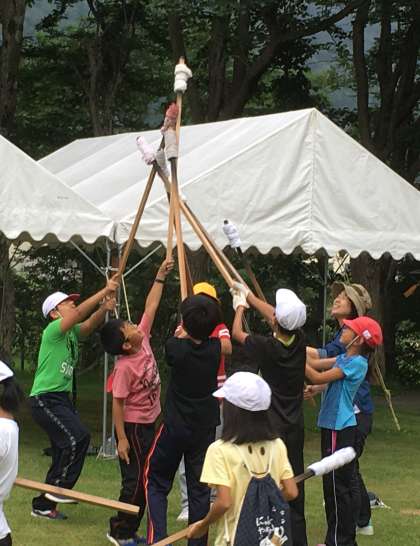 タオルを棒に固定するコツを谷常さんに教えてもらっていましたが、やってみると難しかったみたいでした。火をともすものだけあって、タオルがすっぽ抜けてしまうと危険なので、がっちりと棒に固定されてしまわないといけないんですね。