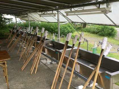 家から持ってきた古いタオルを棒に巻き付けて、針金で固定して作るたいまつ。