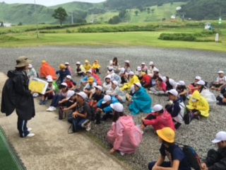 ほんの少しだけ、雨が降ってきました。活動には支障がなさそうなので、オリエンテーリングをします。一応、雨具に着替えてのスタートです。
