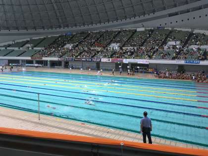 50mプールで、大観衆の前で声援を受けながら、泳ぐという体験ができました。1学期、夏のプールの集大成として、最高の舞台でのまとめとなりました。