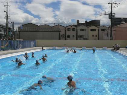 昨日は雨が降ったため、今日が8月のプール開放のスタートになりました。
