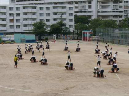 5、6年生は、「WITH YOU」(友とともに)をテーマに組体操を行います。今年度の組体操は、安全面に配慮して、ピラミッドや塔を実施しない組体操ではありますが、仕上がりは、そんな中でも最高のものになりました。5,6年生が、心と力を合わせて、思いを伝えよう、何かを感じてほしいという気持ちがびしびしと伝わってきます。運動会のフィナーレにふさわしい組体操にご声援を!