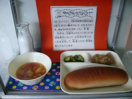 ということで、姉妹都市にちなんだ特別献立でした。ちなみにミラノと大阪市は姉妹都市になって、35年たつったということです。