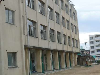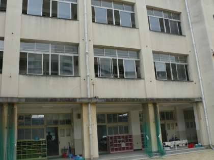 見慣れた校舎。今日から、創立以来の校舎の全面補修の工事が始まりました。台風が近づいてきているなかでの、学校がやきもきするなかでの大工事の開始です。