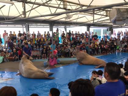 9時55、予定通り鳥羽水族館に着きました。セイウチショーを楽しんでいます。