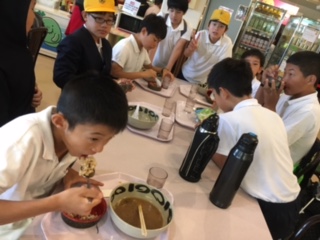 鳥羽水族館での昼食は、ミールクーポンです。グループごとに自分たちで食堂に行き、選んで食べています。