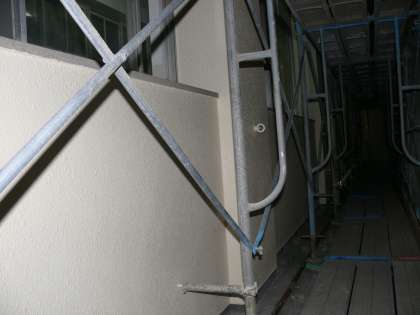校舎の外壁修繕工事、防塵、防音シートで完璧におおわれていて、外からは、どこまで工事が進んでいるのかわからない状況でした。で、今日、聞いてみると、一部塗装に入りましたとのこと。で、塗装完了の部分を見せてもらうと、見事な色の外壁を発見することができました。汚れのない気持ちのいい外壁でした。