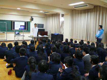 今日は、学校薬剤師の岡先生に来ていただき、6年生を対象に「薬の正しい使い方」について学習しました。