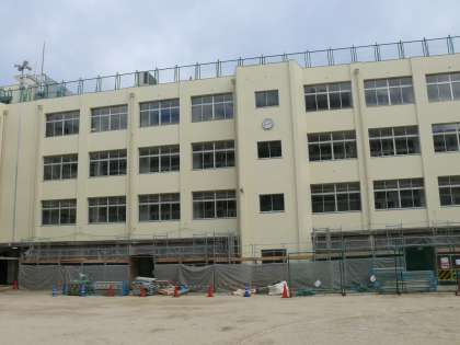 平成28年の仕事納めになりました。昨日紹介しましたように、運動場側の外壁工事用防塵・防音幕が1階を除いてすべて取れました。廊下が、明るくなって、気持ちが晴々してきます。