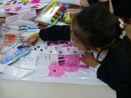 凧が空に上がる姿を想像してデザインを考え、それぞれがユニークなオリジナルの凧を作りあげました。自分たちでデザインした凧が風になびいて上がると、とてもきれいで嬉しそうな様子でした。