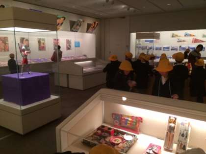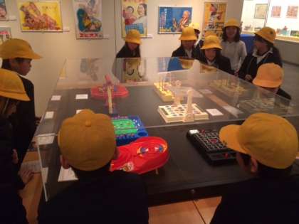 そして、企画展示(家族旅行・百貨店・映画の3つの軸から当時の資料をもとにした昭和の日曜日の過ごし方)を見ました。おもちゃや鉄道の写真、映画のポスターなどがあり、子どもたちは興味深く見ていました