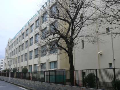 外壁塗装工事。最後まで残っていた道路側の防塵防音幕及び足場がすべて撤去されました。運動場にあった工事の小屋などもすべて撤去され、ほぼ工事の様子をうかがうものはなくなり、校舎の色が輝いていることだけが以前と違うところです。