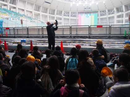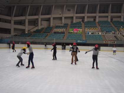はじめは、手すりを持っておそるおそる歩いていた子どもたちも、だんだんと慣れていき、すぐに手すりを離してスイスイと滑れるようになりました。転びながらも、どんどんチャレンジし、コツをつかんで躊躇なくスケートリンクで思う存分滑っていました。施設の人に滑り方や、後ろすべりの仕方を教えてもらっている児童もいれば、なかなか手すりをはなせない児童も、友達と手をつないでリンクを一周したり、鬼ごっこをしたりとそれぞれが友だちと一緒に過ごすことができました。