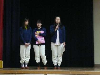 最後に、給食調理員さんのお話を聞きました。給食を取りに来たり、返しに来たりしたときに、「いただきます」「ごちそうさま」など声をかけてくれるのがとてもうれしいです。安全においしく食べてもらえるように作っていますので、しっかり食べてくださいね。とお話しされました。