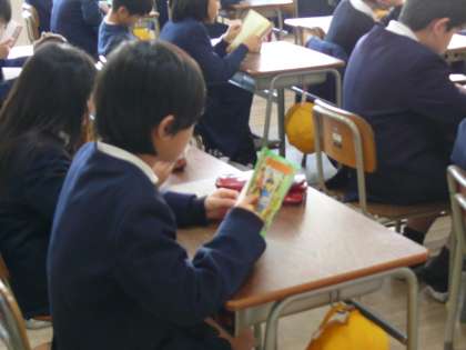 読書週間の3回目を実施しています。学期に1回ずつ「読書週間」の期間を設定して、読書習慣の向上に努める取り組みをしています。毎日の朝の会の時に、ひとり一人が、読書に励みます。クラス全員が、一斉に読書をします。