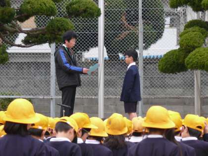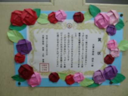 『手洗いうがいがんばりカード』を活用しました。それを集計した結果4年1組が、大東小学校手洗いうがいナンバーワンに輝き、表彰されました。